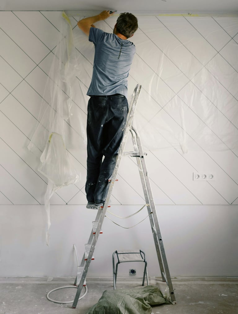 We carefully prepare every surface, protecting your space and ensuring the best conditions for a long-lasting finish.
